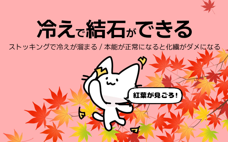 腎臓はカルシウム代謝と関係が深いので、冷えが溜まっていて腎臓の機能が落ちているとカルシウムが固まりやすくなって「石」が出来やすくなります。